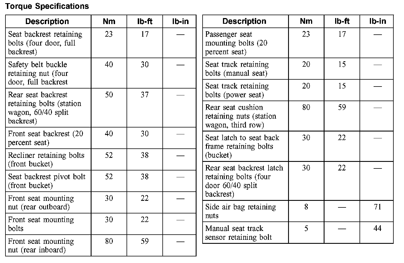 Torque Specifications: