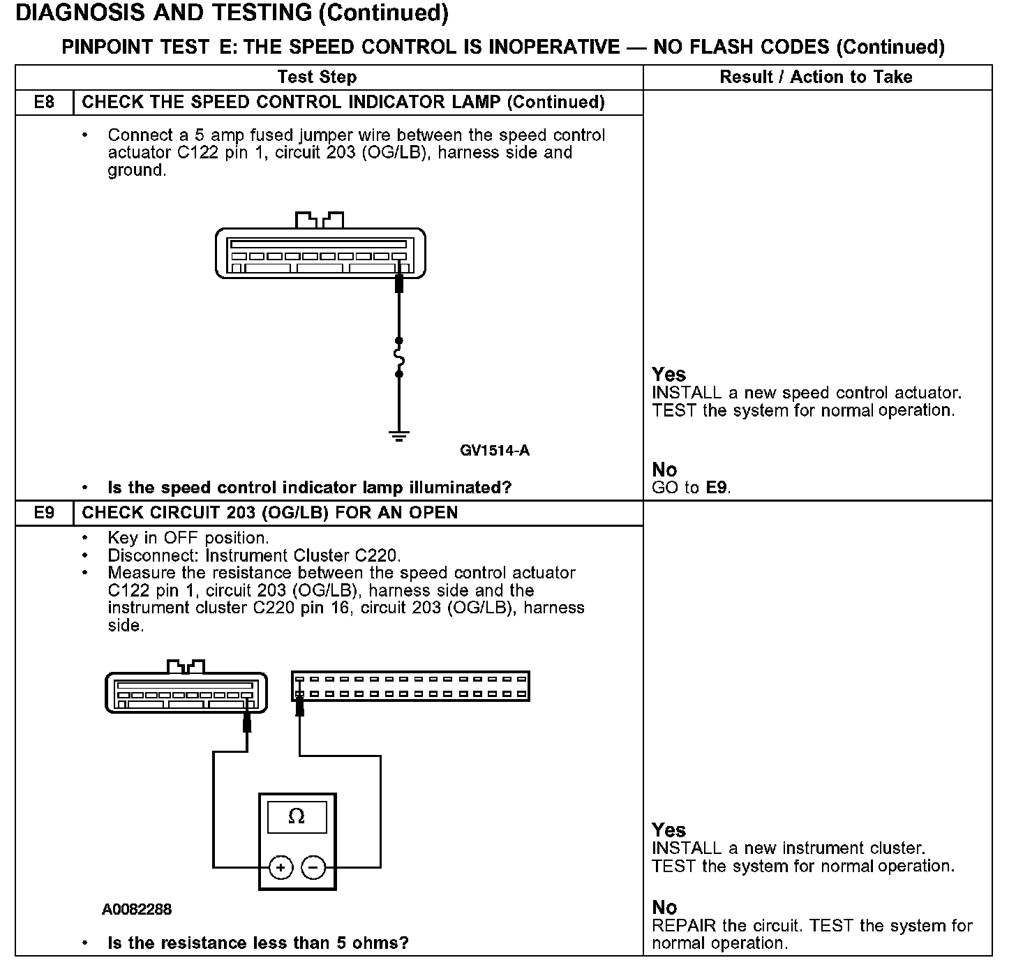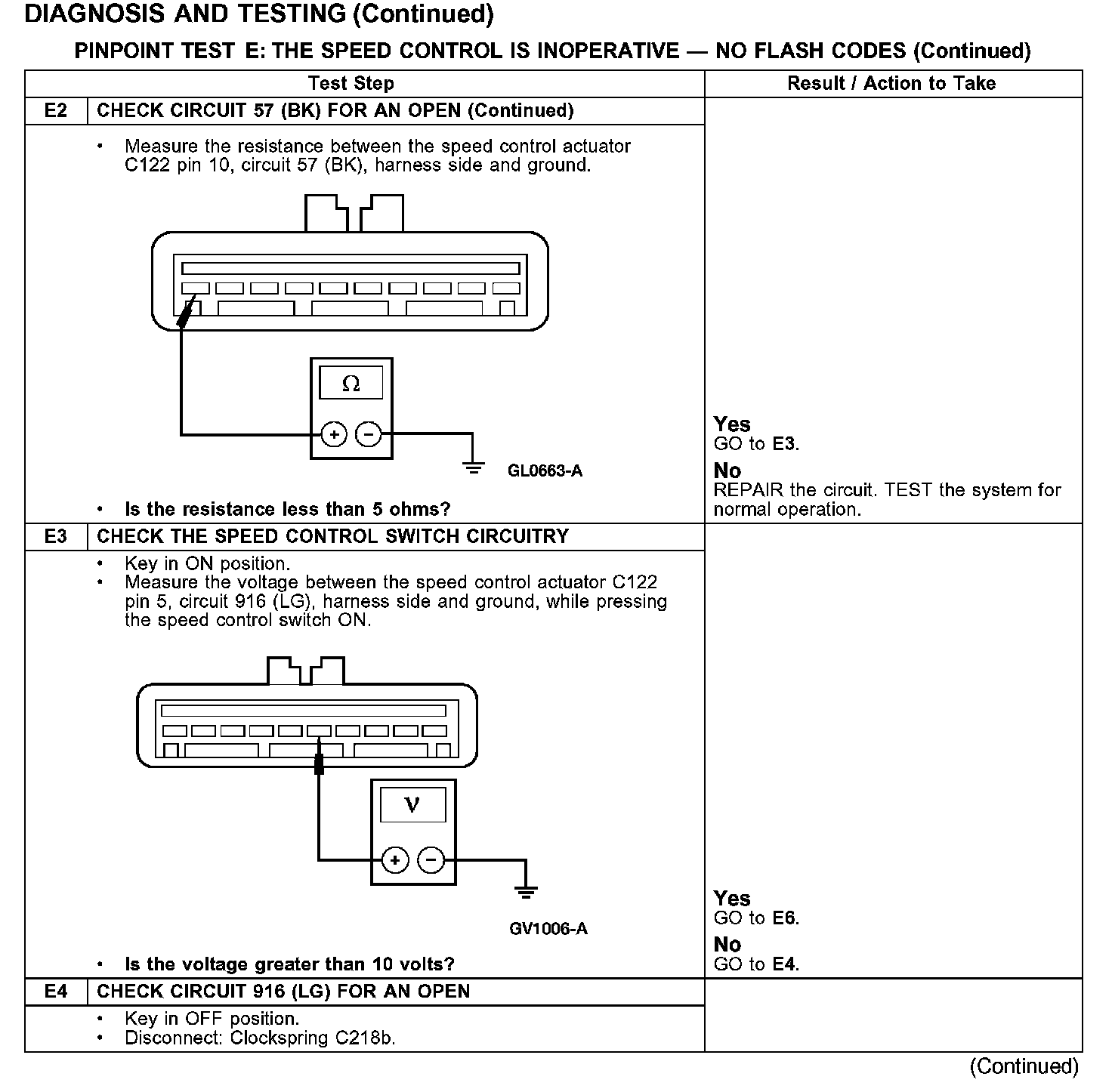 PINPOINT TEST E: THE SPEED CONTROL IS INOPERATIVE - NO FLASH CODES