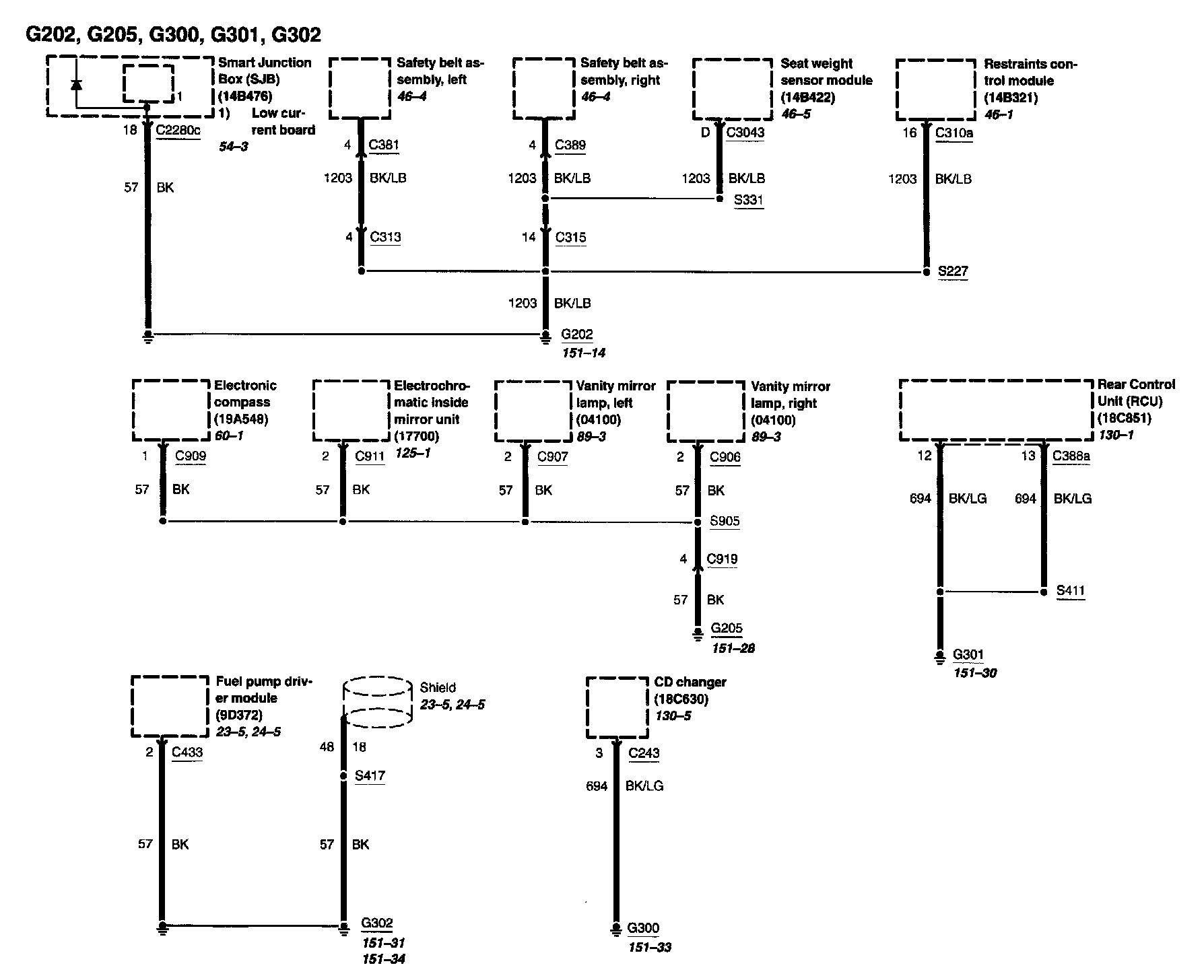 Locations: Location Views (reference numbers starting with 151-) referred to within these diagrams can be found at Component Location Views. Component Location Views