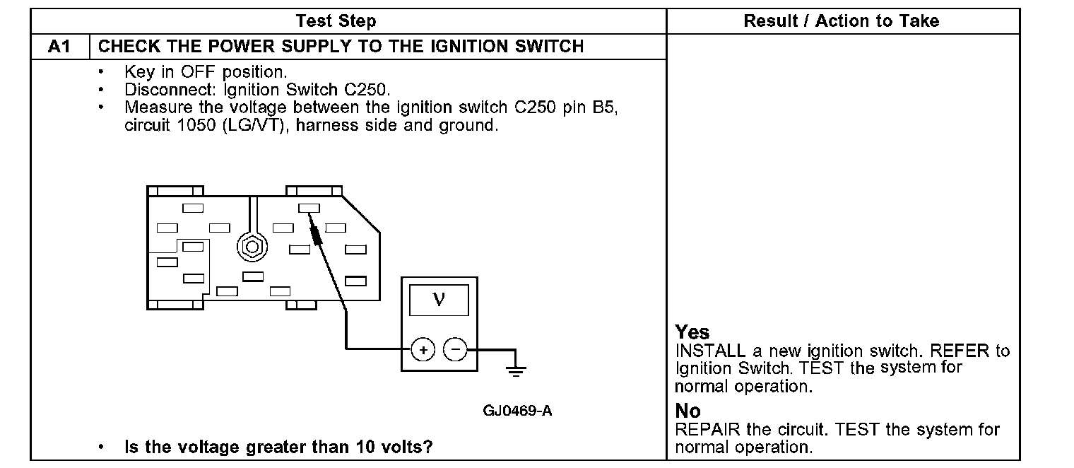 PINPOINT TEST A: THE IGNITION SWITCH IS INOPERATIVE