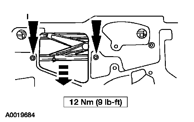 6. Push the window regulator equalizer arm bracket down and tighten the nuts.