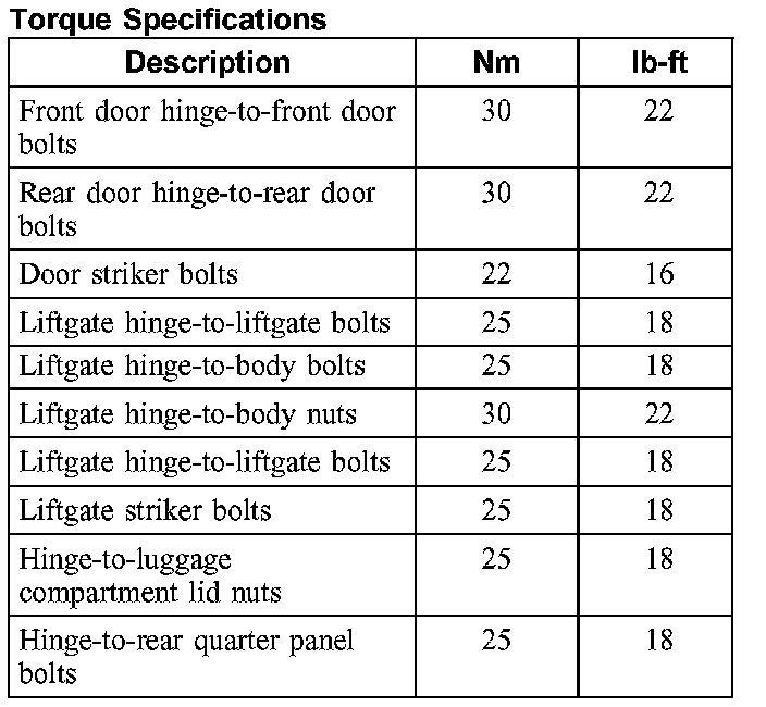 Doors, Hood and Trunk: Specifications