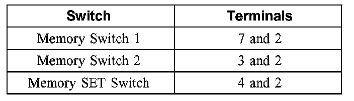 To check the memory SET switch LED, connect the positive meter lead to terminal 2 and the negative lead to terminal 8. The meter should indicate greater than 0.3 volts. Reversing the leads, the meter should read OL.