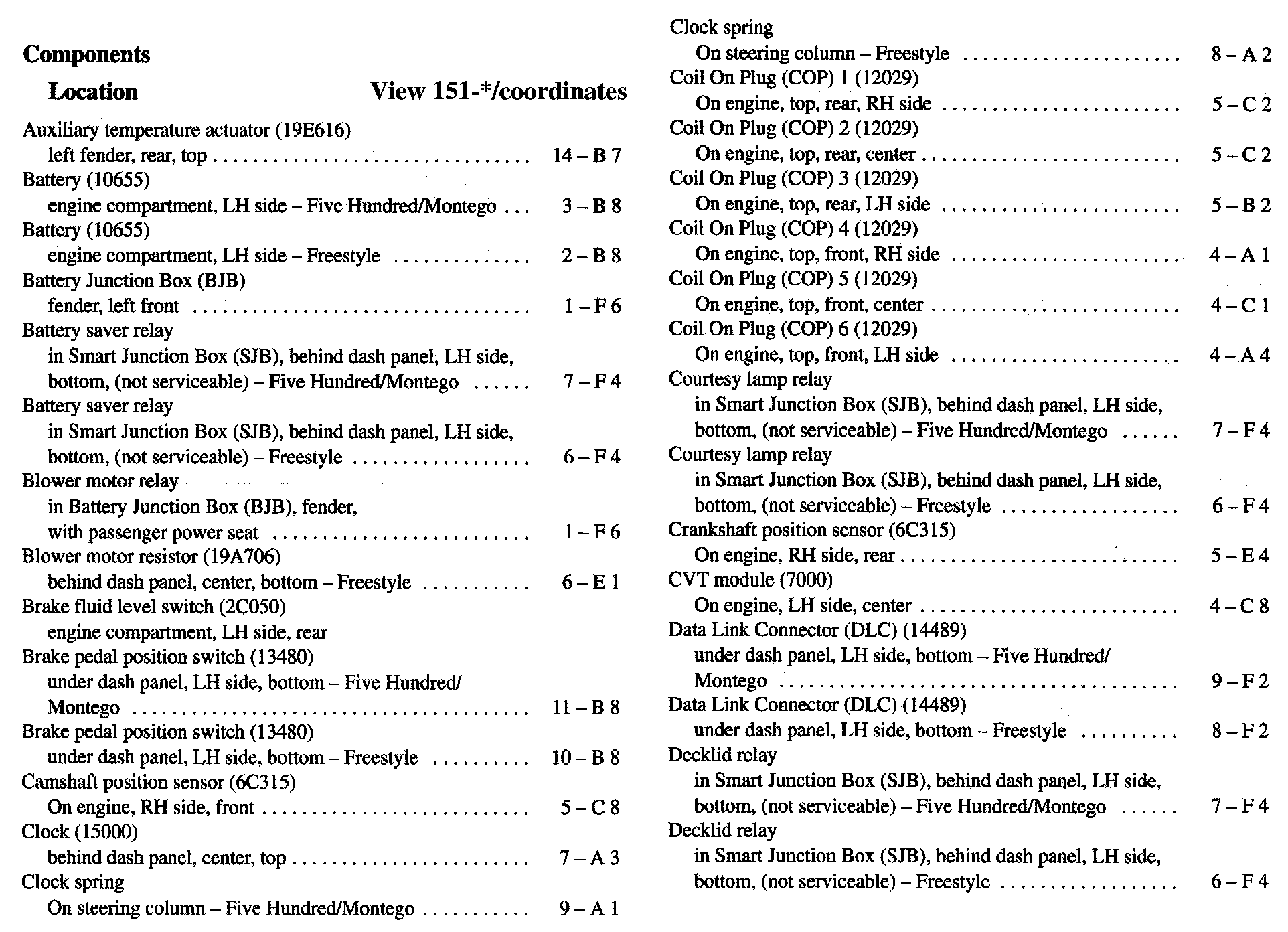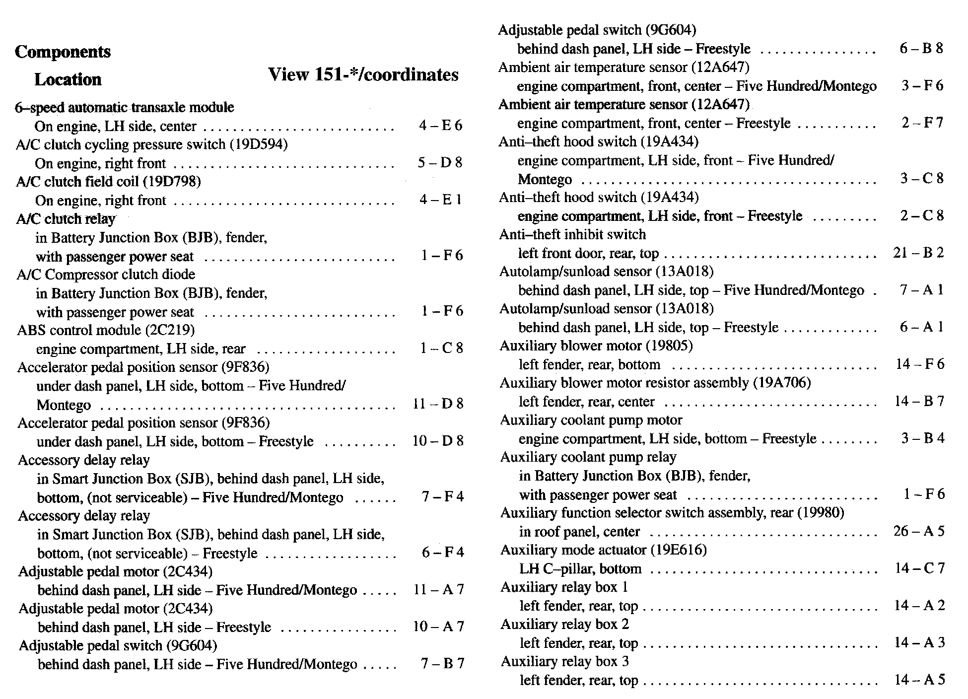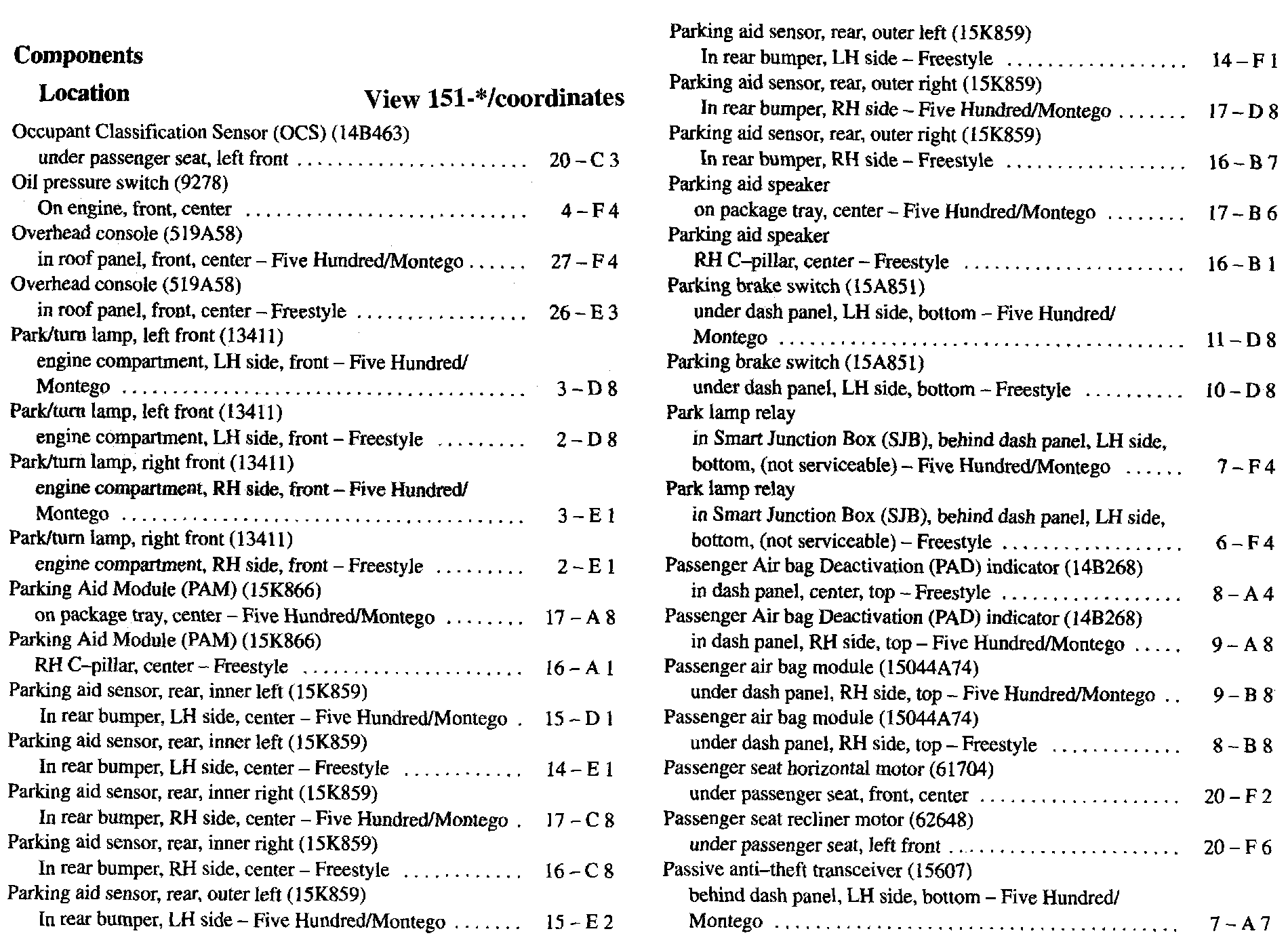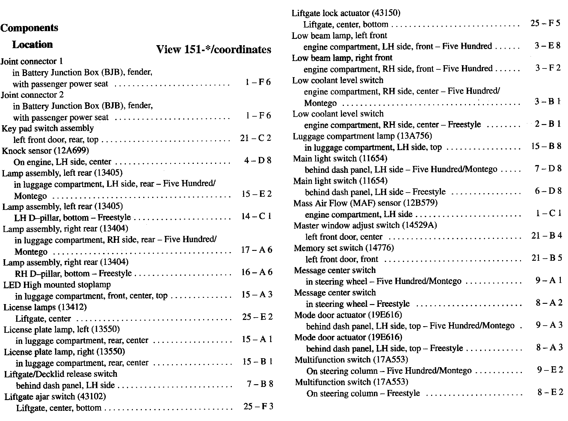 Component Location Index