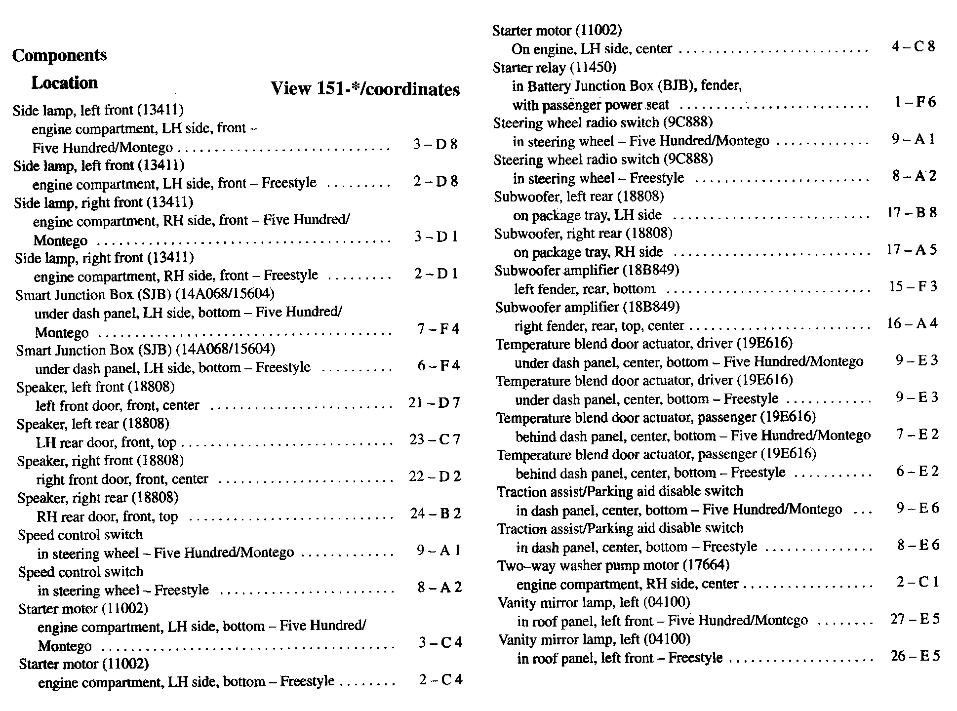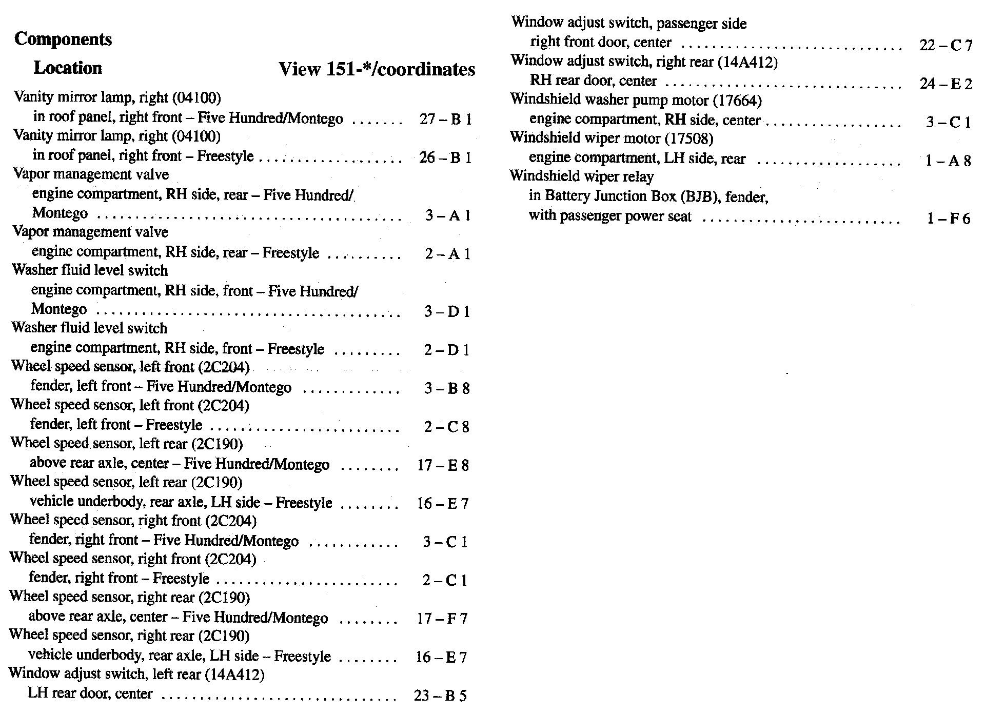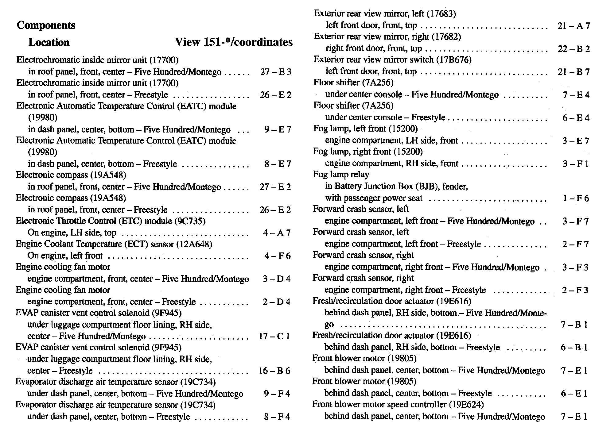Component Location Index
