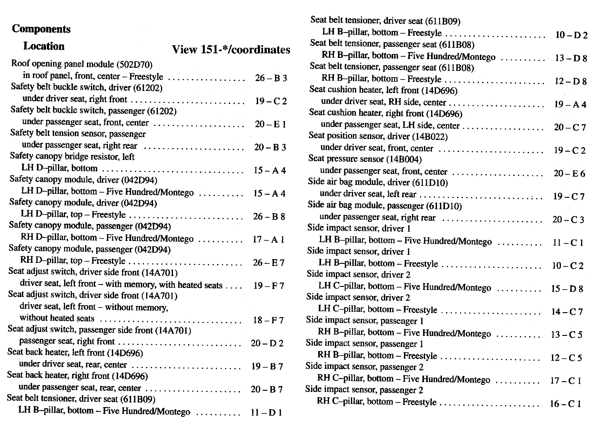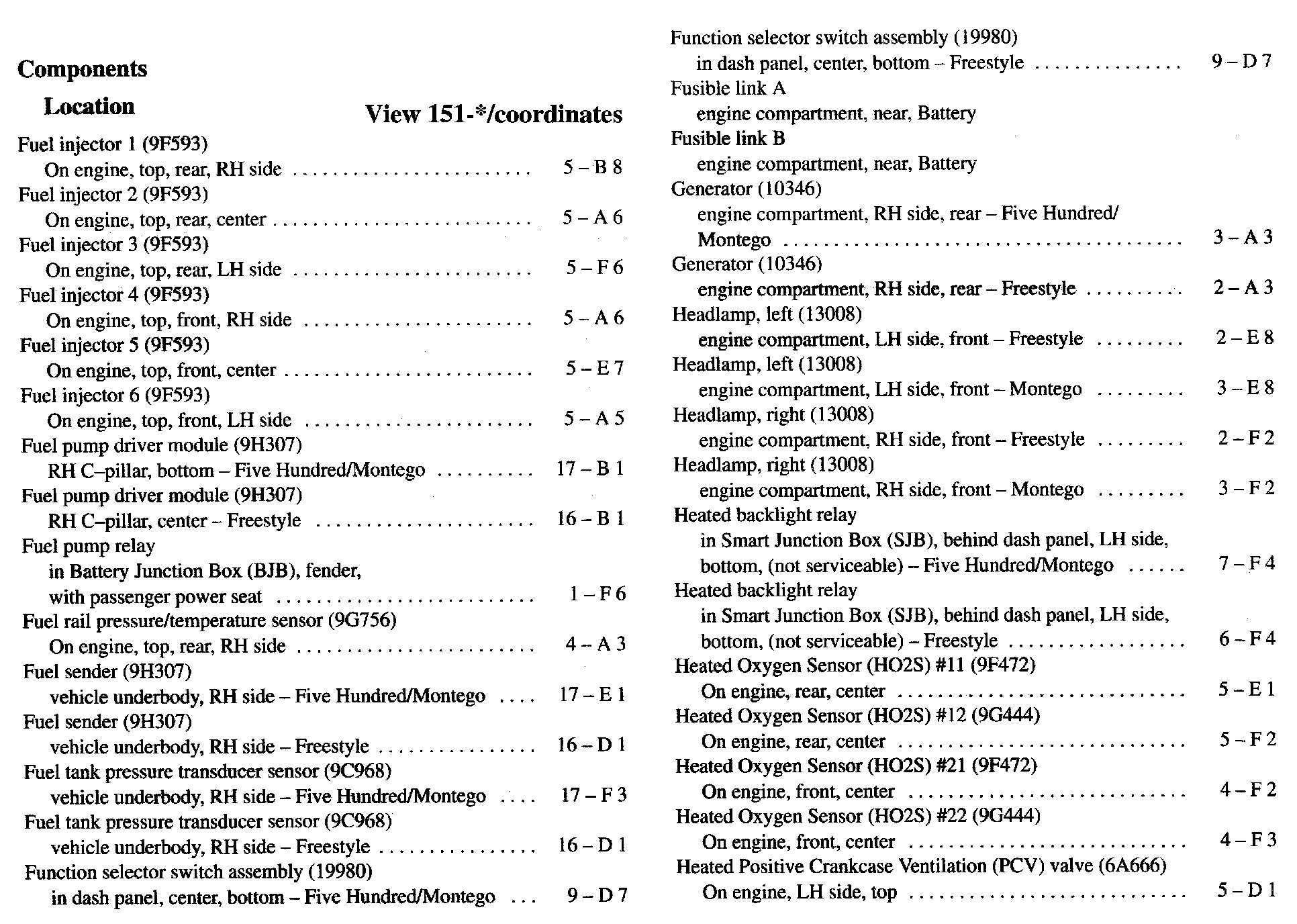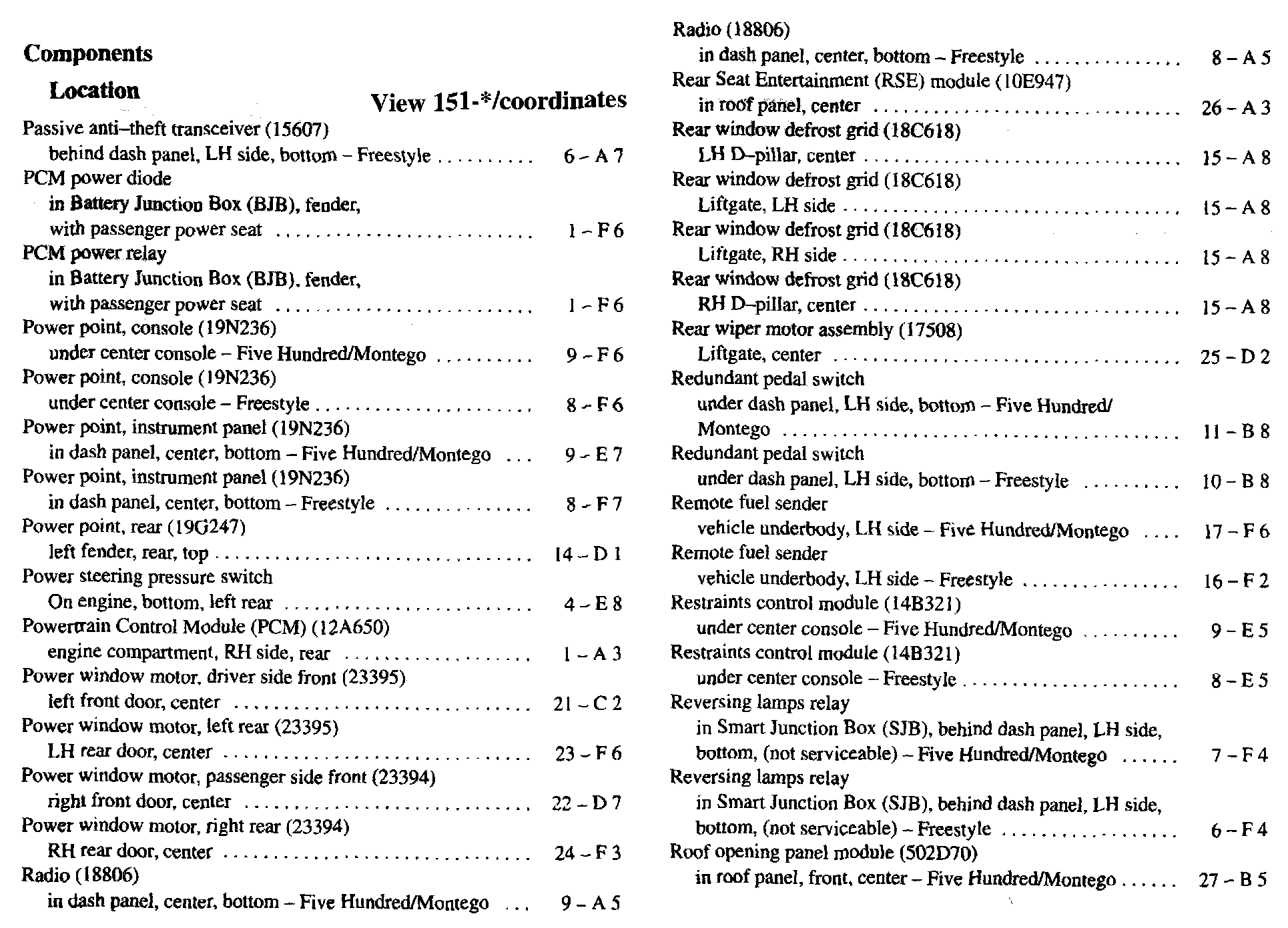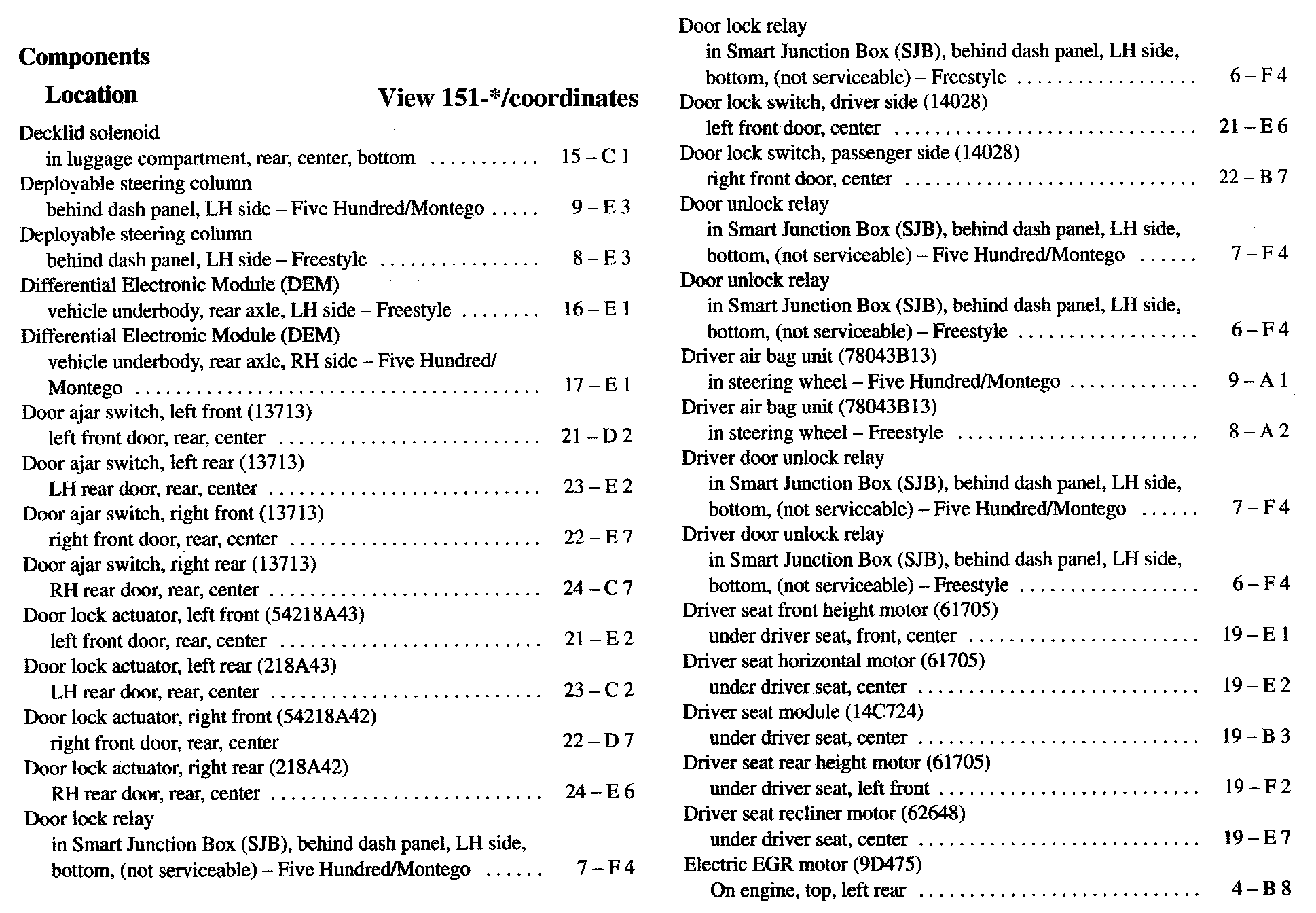 Component Location Index