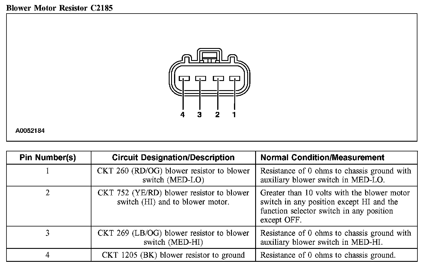 Blower Motor Resistor C2185:
