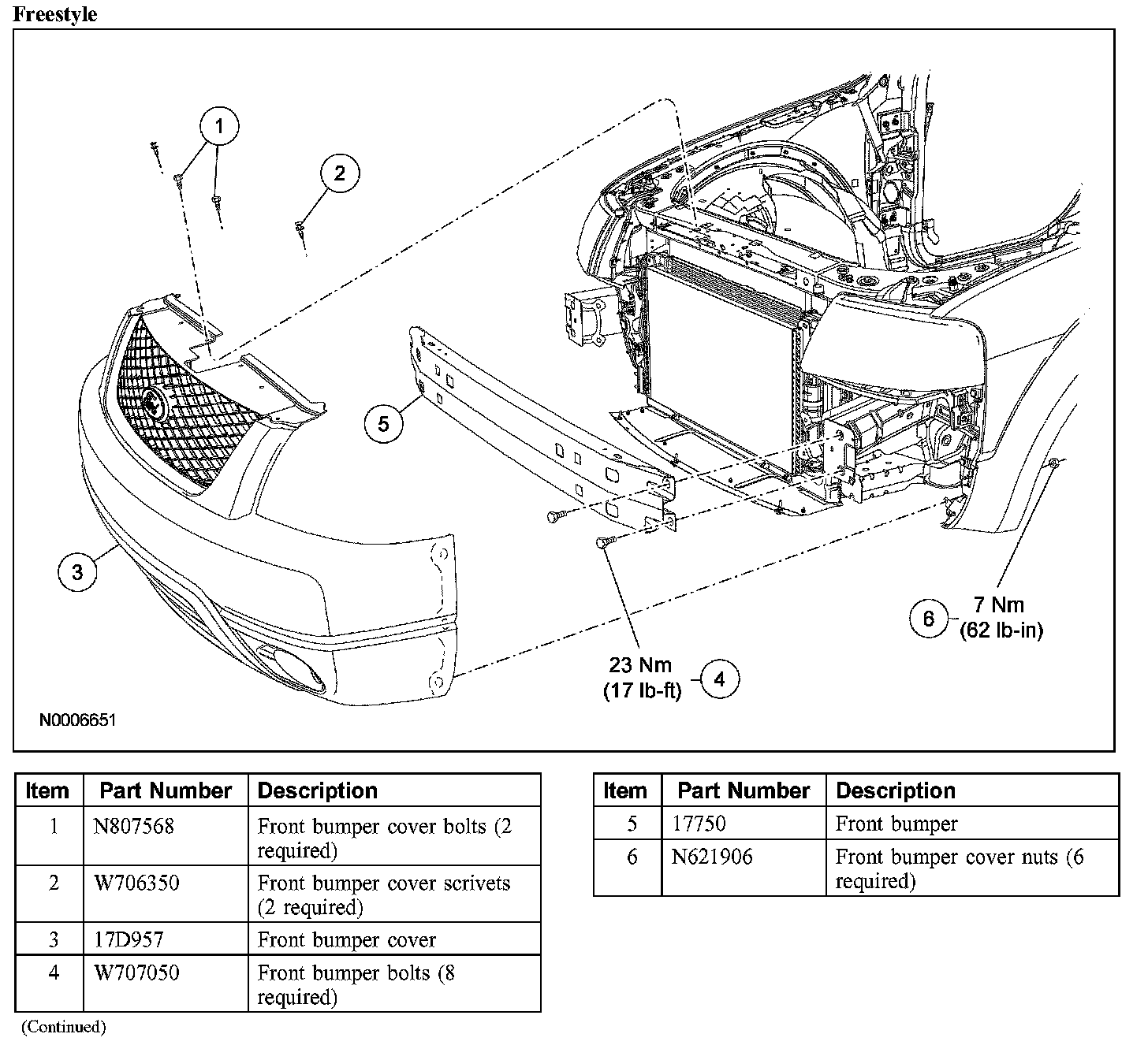 6. NOTE: Tack welds retaining the front bumper to the body rails are not required for installation. Install new front bumper bolts.