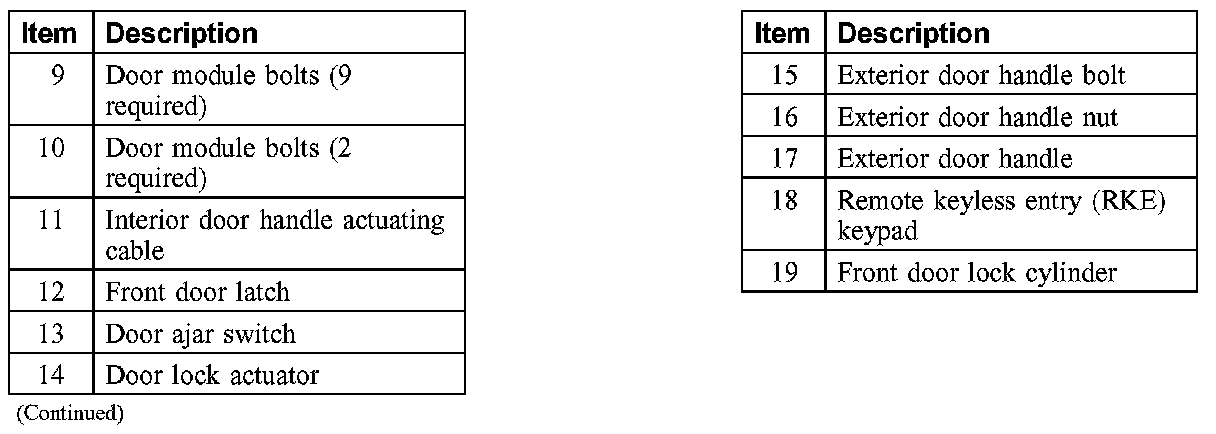 FRONT DOOR HANDLES, LOCKS AND LATCHES - EXPLODED VIEW
