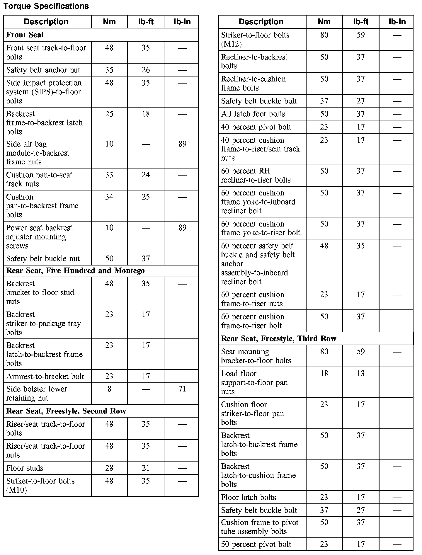 Torque Specifications: