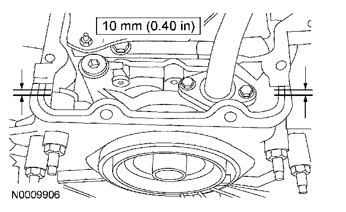 Apply a 10 mm (0.39 inch) diameter dot of silicone sealant to the areas indicated.