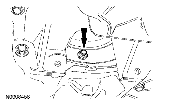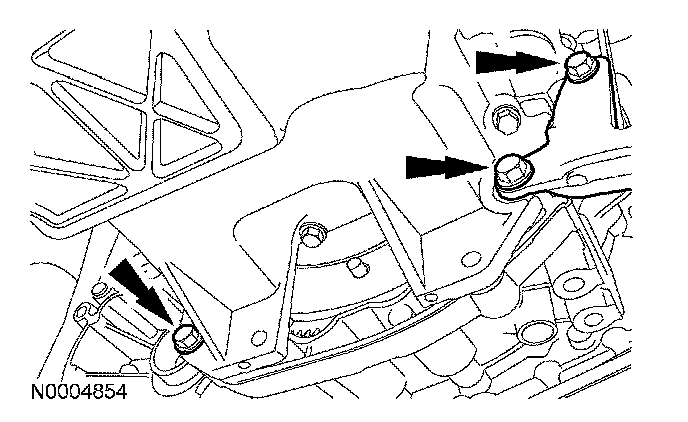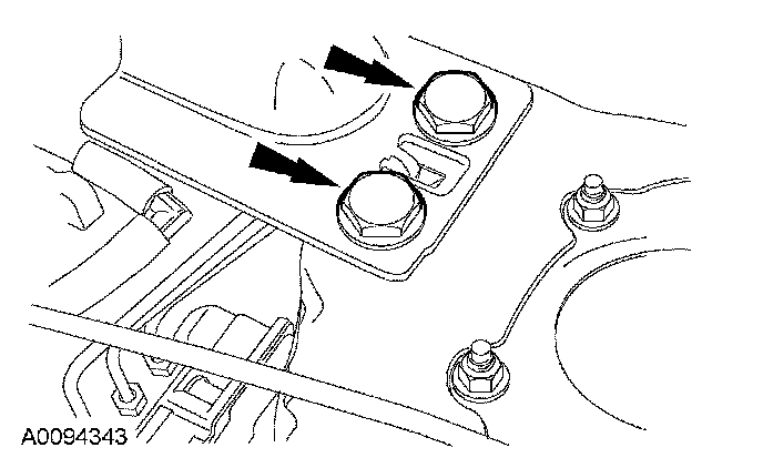 51. Position the LH catalytic converter bracket and install the 3 engine to transaxle bolts.
