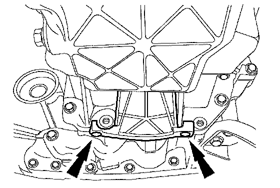 55. Position the lower torque converter access plug and install the pin-type retainers.