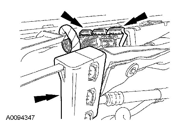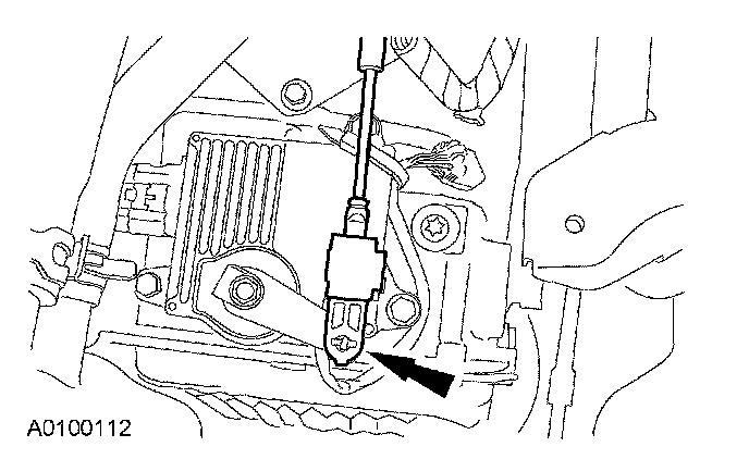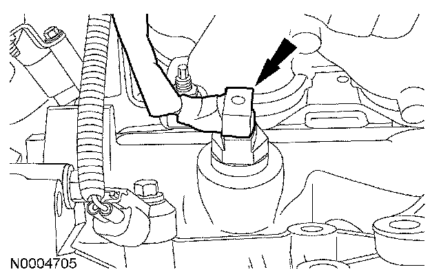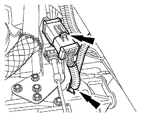 ^ Connect the electrical connector to the shift cable bracket.