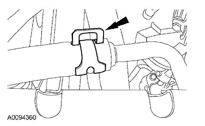 48. If equipped, position the driveshaft support bracket and install the 2 bolts.