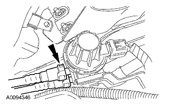 ^ Attach the electrical connector to the shift cable bracket.