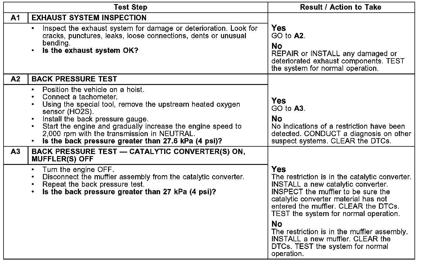 PINPOINT TEST A: RESTRICTED EXHAUST SYSTEM TEST