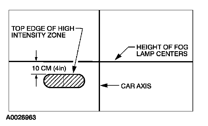 3. The correct visual aim for the fog lamps is with the top edge of the high-intensity zone 10 cm (4 in) below the horizontal center of the fog lamps.