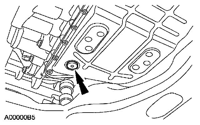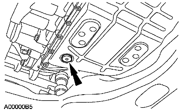 2. Remove the fluid pan drain plug and allow the fluid to drain.