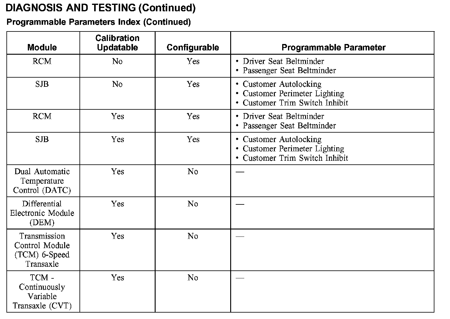 Programmable Parameters Index (Part 2):