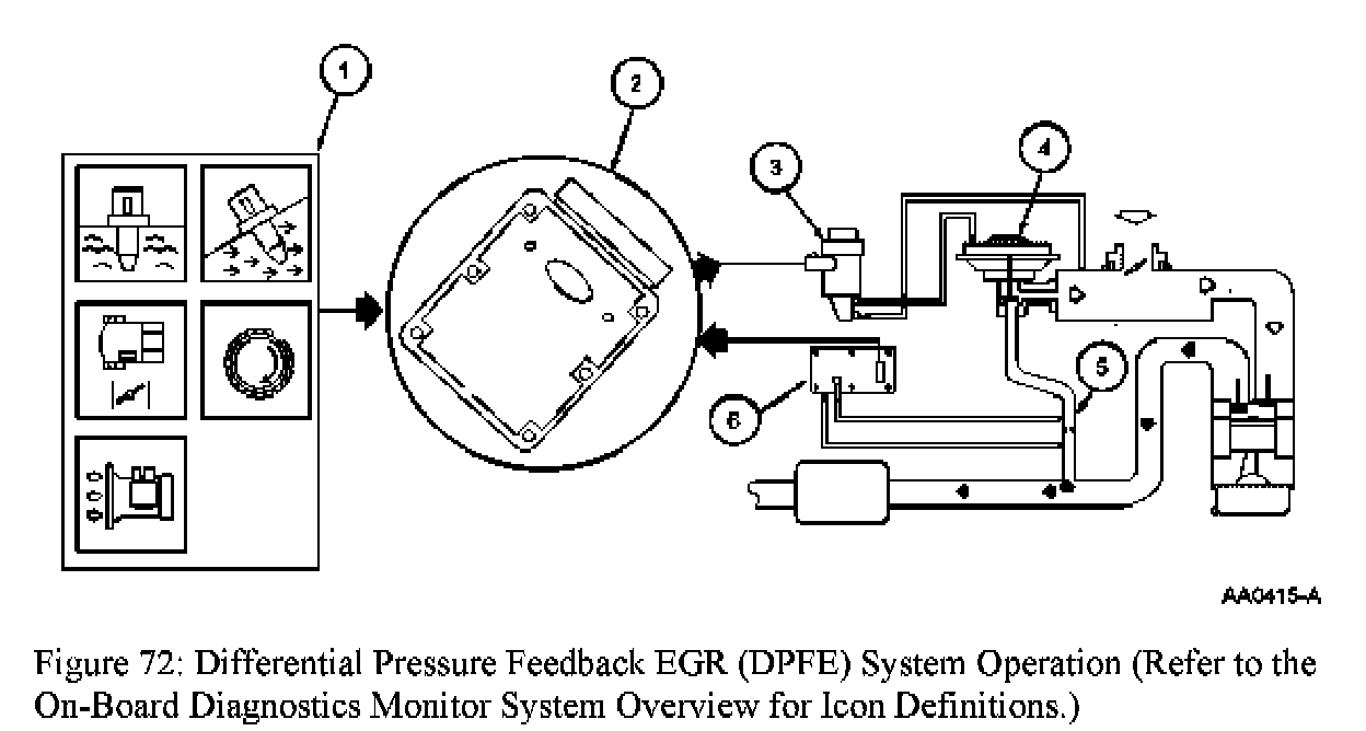 1. The DPFE system receives signals from the engine coolant temperature (ECT) sensor or cylinder head temperature (CHT) sensor intake air temperature (IAT) sensor throttle position (TP) sensor mass air flow (MAF) sensor and crankshafi position (CKP) sensor to provide information on engine operating conditions to the PCM. The engine must be warm stable and running at a moderate load and RPM before the EGR system is activated. The PCM deactivates EGR during idle extended wide open throttle or whenever a failure is detected in an EGR component or EGR required input.