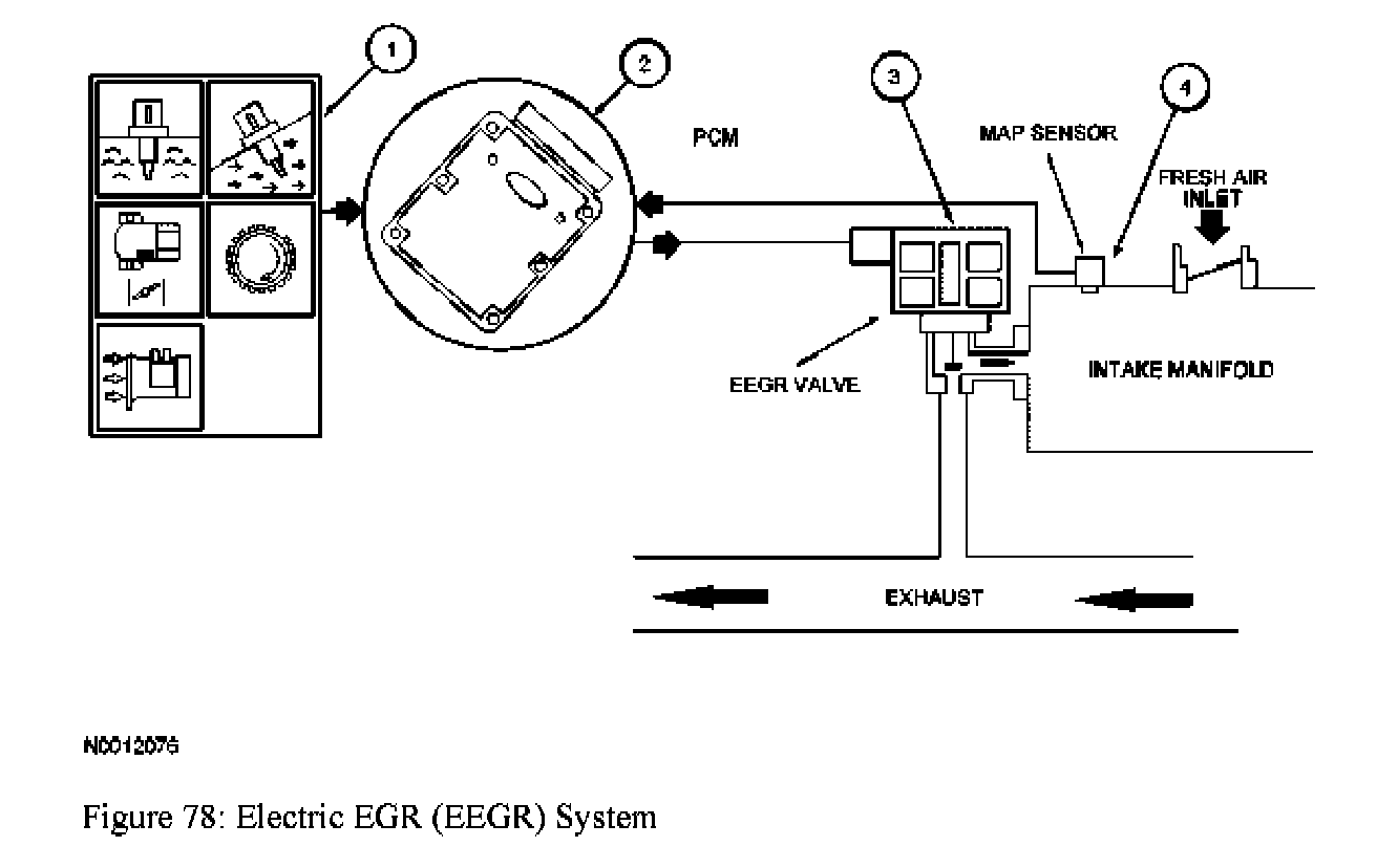 1. The EEGR system receives signals from the engine coolant temperature (ECT) or cylinder head temperature (CHT) sensor throttle position (TP) sensor mass air flow (MAF) sensor crankshaft position (CKP) sensor and the manifold absolute pressure (MAP) sensor to provide information on engine operating conditions to the PCM. The engine must be warm stable and running at a moderate load and RPM before the EEGR system is activated. The PCM will deactivate the EEGR during idle extended wide open throttle or whenever a failure is detected in an EEGR component or EGR required input.