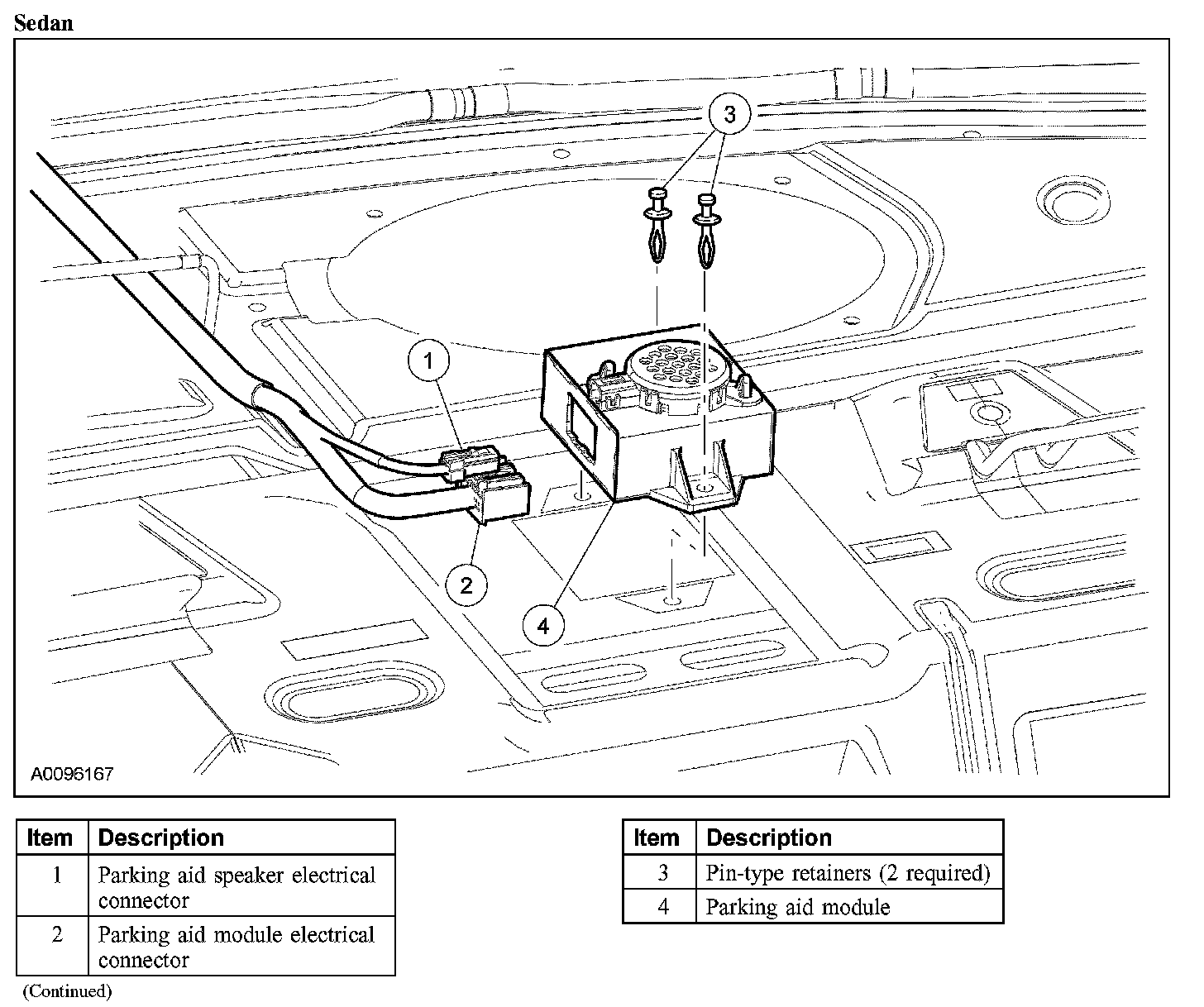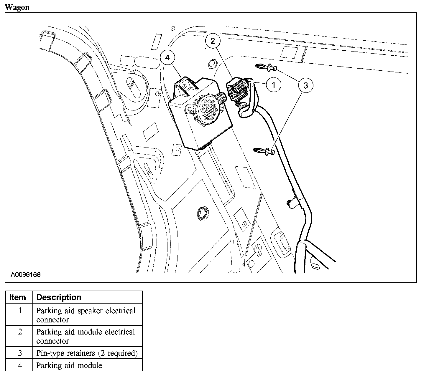 5. Remove the 2 pin-type retainers and the parking aid module.