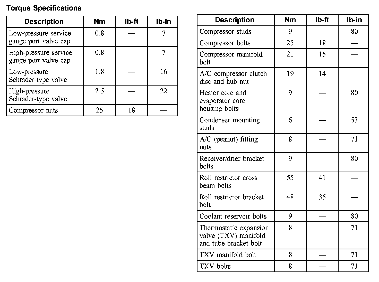 Torque Specifications