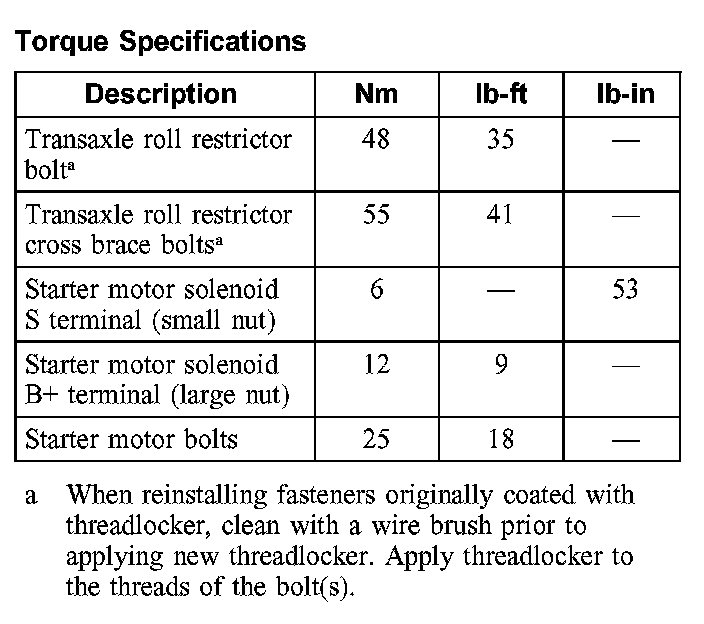 Torque Specifications: