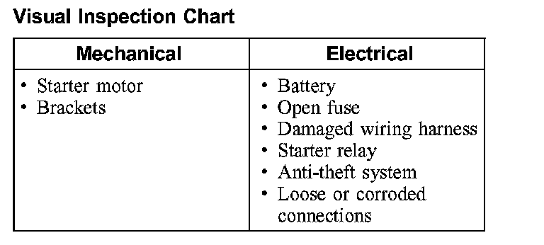 NOTE: The anti-theft system must be functioning correctly before a logical starting system diagnosis can be carried out. Address anti-theft system concerns before continuing.