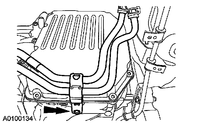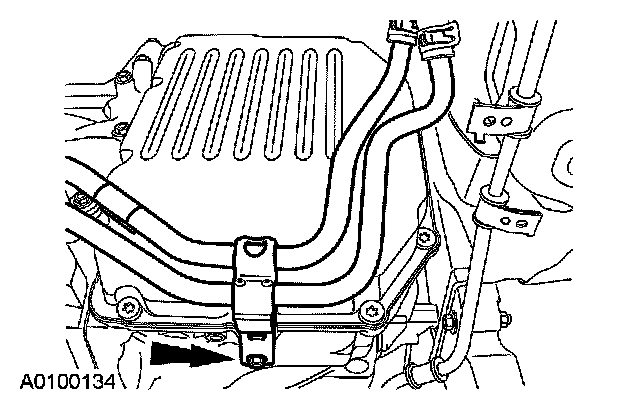 4. Disconnect the transmission fluid cooler tube bracket and position the tubes aside.