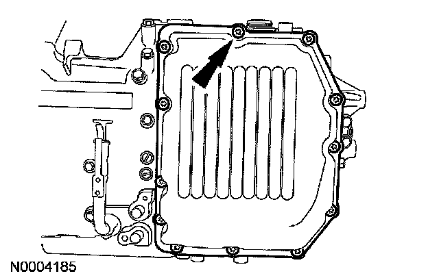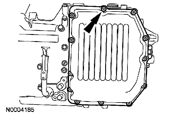 5. Remove the transmission fluid pan bolts and remove the pan.