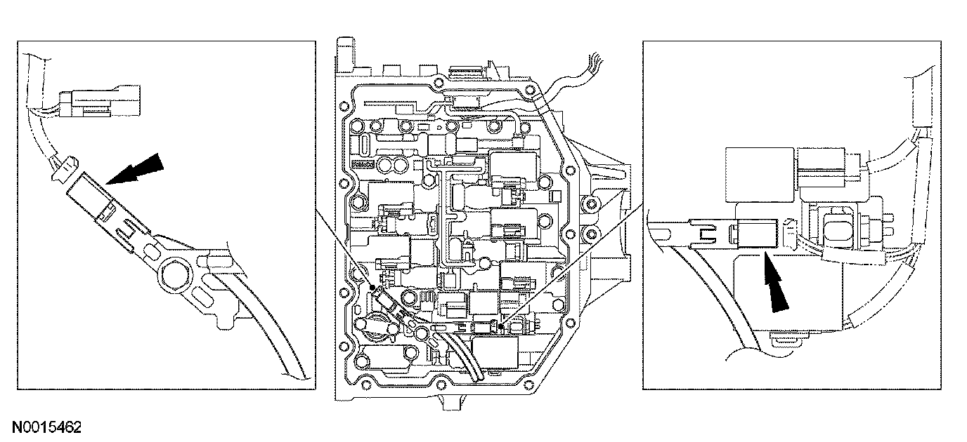 ^ Connect the 8 solenoid connectors and the 2 speed sensor connectors.