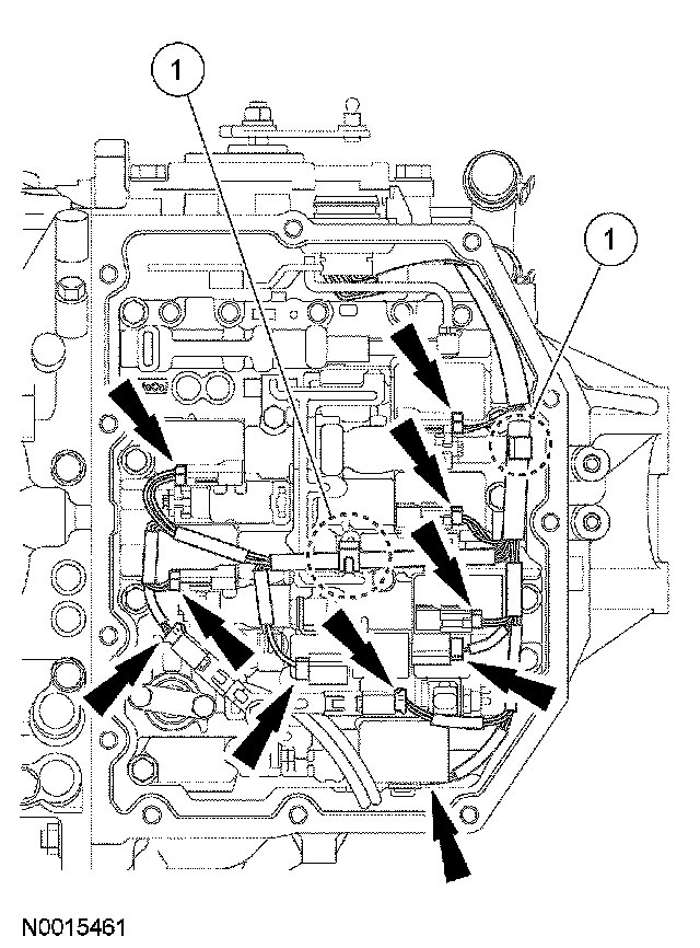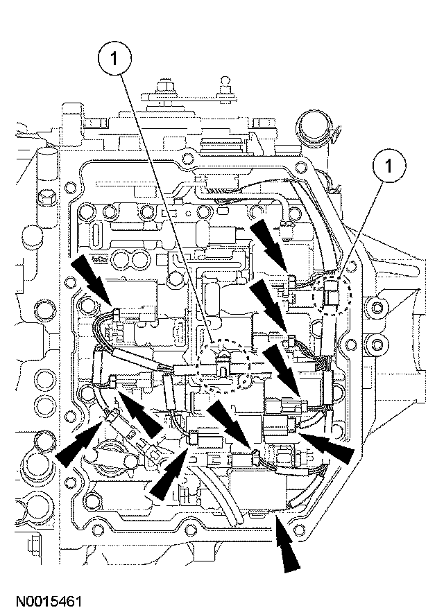 ^ Disconnect the 8 solenoid connectors and the 2 speed sensor connectors.