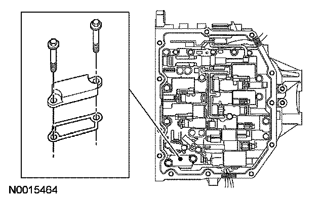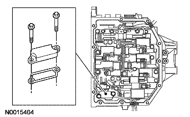 1. CAUTION: When installing the main control valve body, place the wire harness in the open space of the separate plate being careful not to pinch the harness. Damage to the harness will occur.