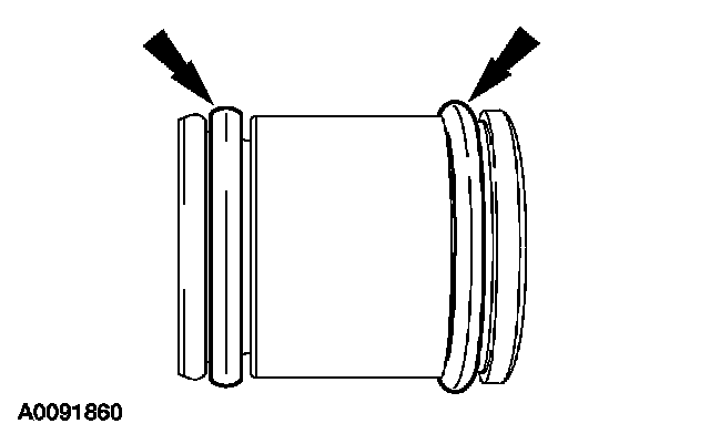 10. Remove and discard the 2 square cut seals, the O-ring seal and the retaining clip from the primary cover feed tube.