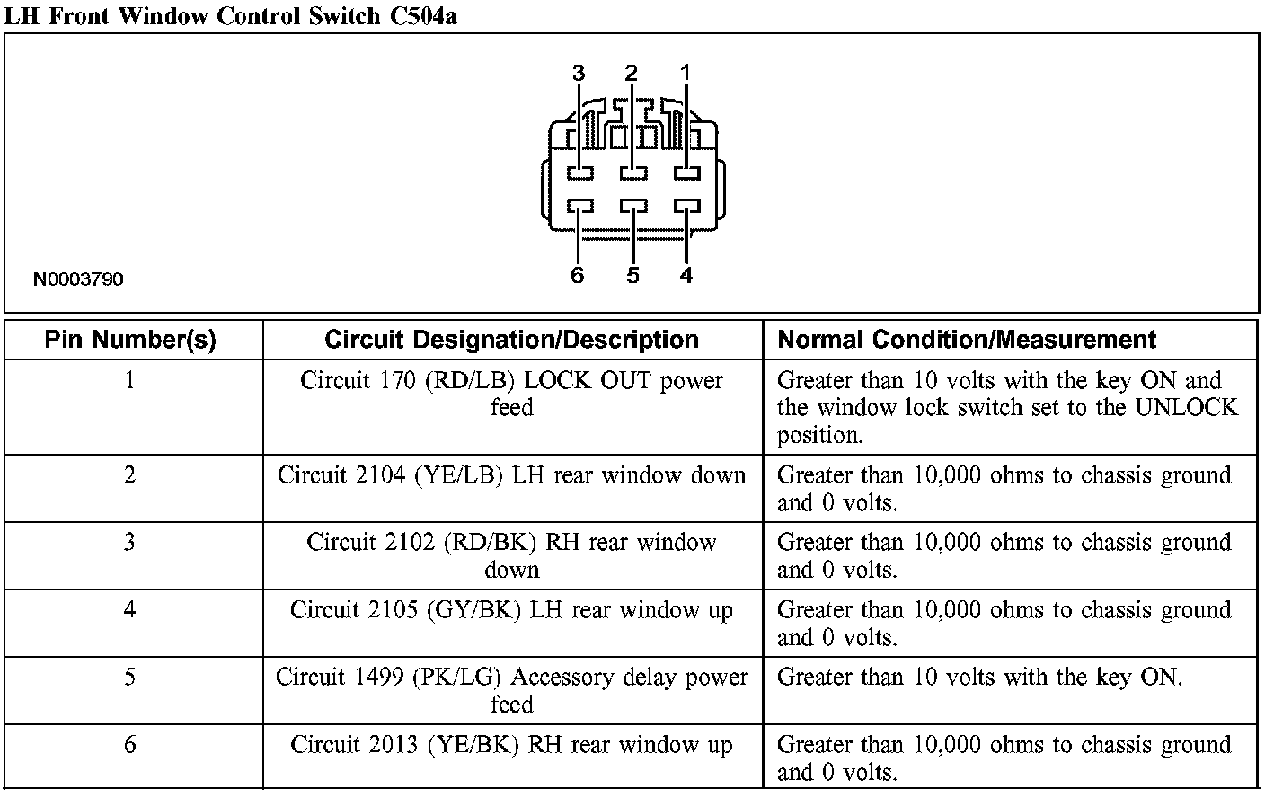 LH Front Window Control Switch C504a: