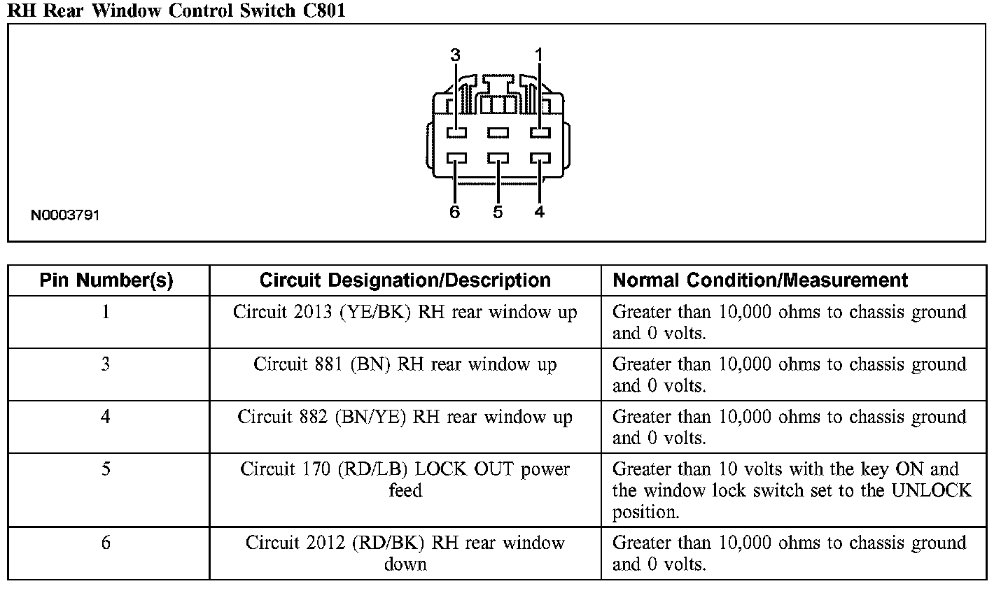 RH Rear Window Control Switch C801: