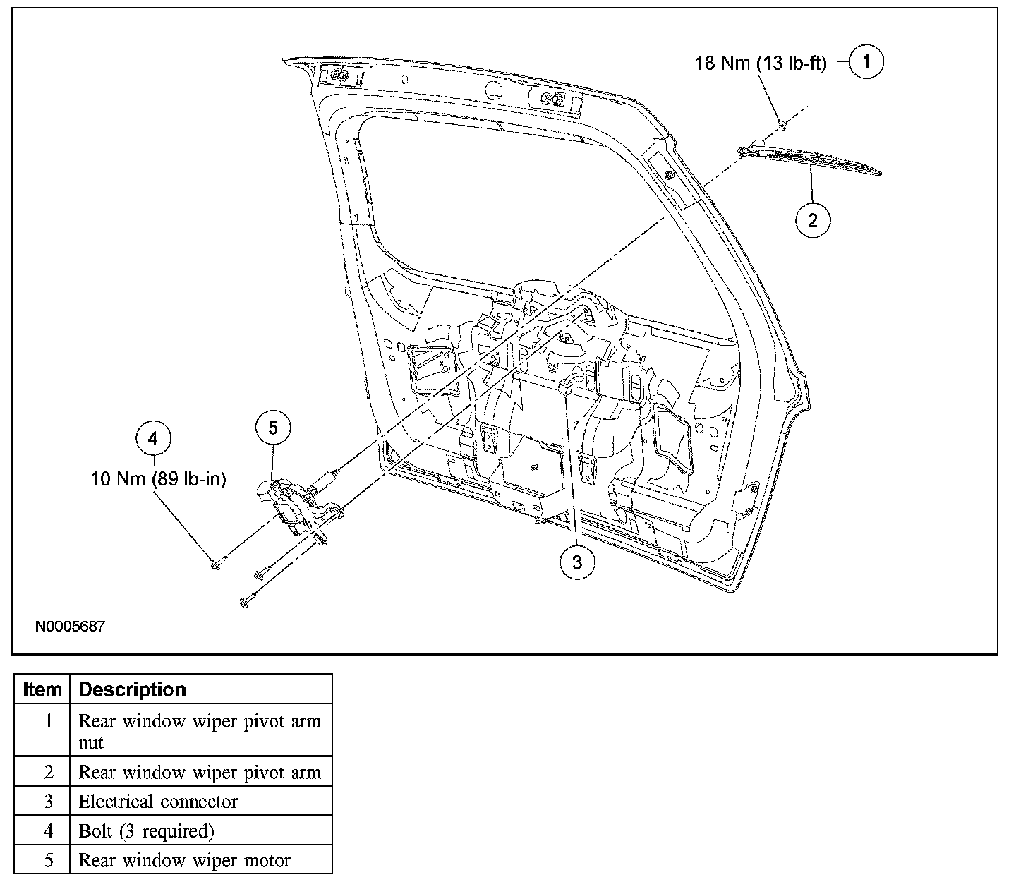 WIPER AND WASHER SYSTEM - EXPLODED VIEW, REAR