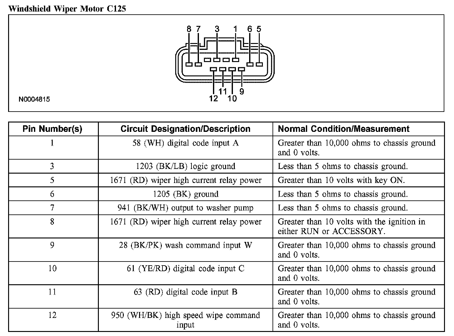 Windshield Wiper Motor C125: