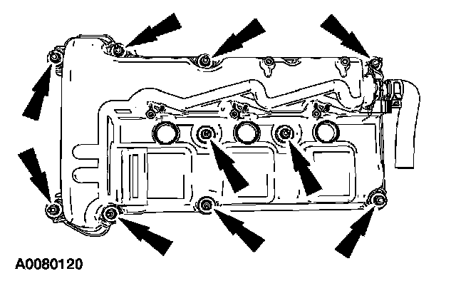 Loosen the RH camshaft cap bolts in the indicated sequence and remove the camshaft caps.
