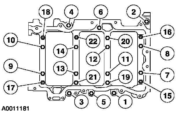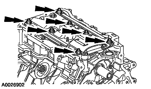 Loosen the bolts in the indicated sequence and remove the LH and RH cylinder heads.
