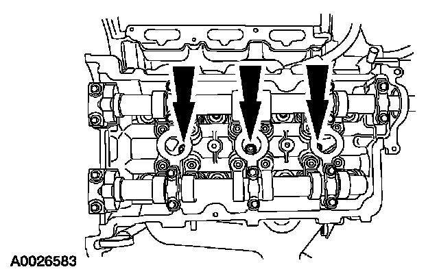 ^ Tap the caps lightly with a soft-faced mallet to loosen the camshaft caps.