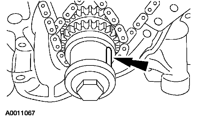 58. Rotate the crankshaft clockwise to position the crankshaft keyway in the 11 o'clock position and position the camshafts in the correct position. This will position the number one cylinder at top dead center (TDC).