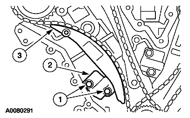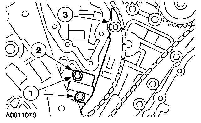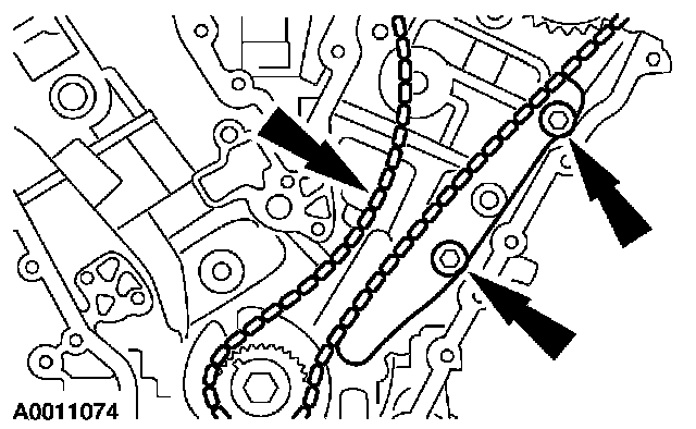 62. Remove the bolts, RH timing chain guide and the timing chain.