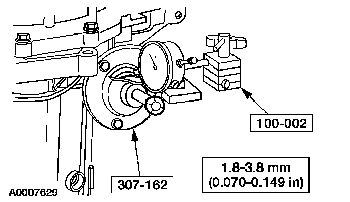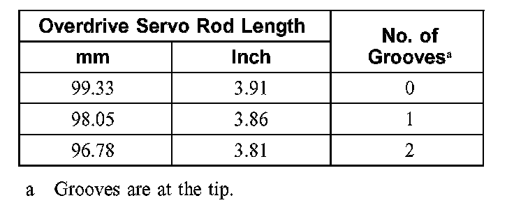 77. Using the special tools, back off the center screw until the piston movement stops and read the dial indicator. The reading should be within specification. If the reading does not match the specification, see the overdrive specification chart and determine which overdrive servo rod to use.