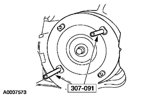 105. NOTE: Locate and align the orange dot adjacent to the stud on the torque converter and place it in the 6 o'clock position.