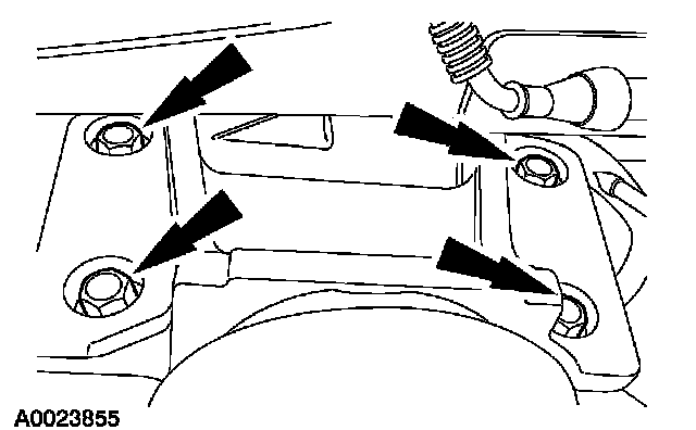 5. Remove the engine and transaxle upper support bracket bolts and bracket.