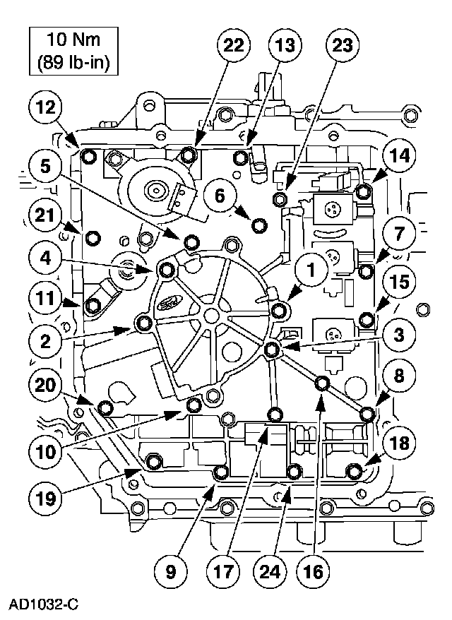 28. CAUTION: Do not remove the two bolts that hold the pump assembly and main control valve body together as the pump assembly may fall from the main control valve body.