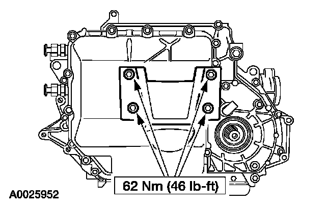 25. NOTE: It will be necessary to lower the left side of the subframe to remove the pan through the wheel well.